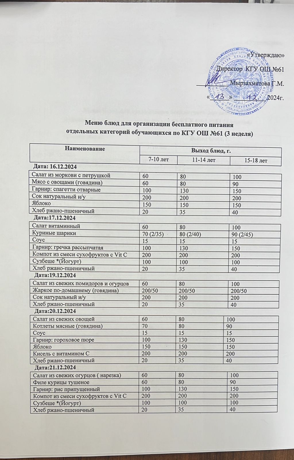 3 апта меню ( 17.12-21.12)