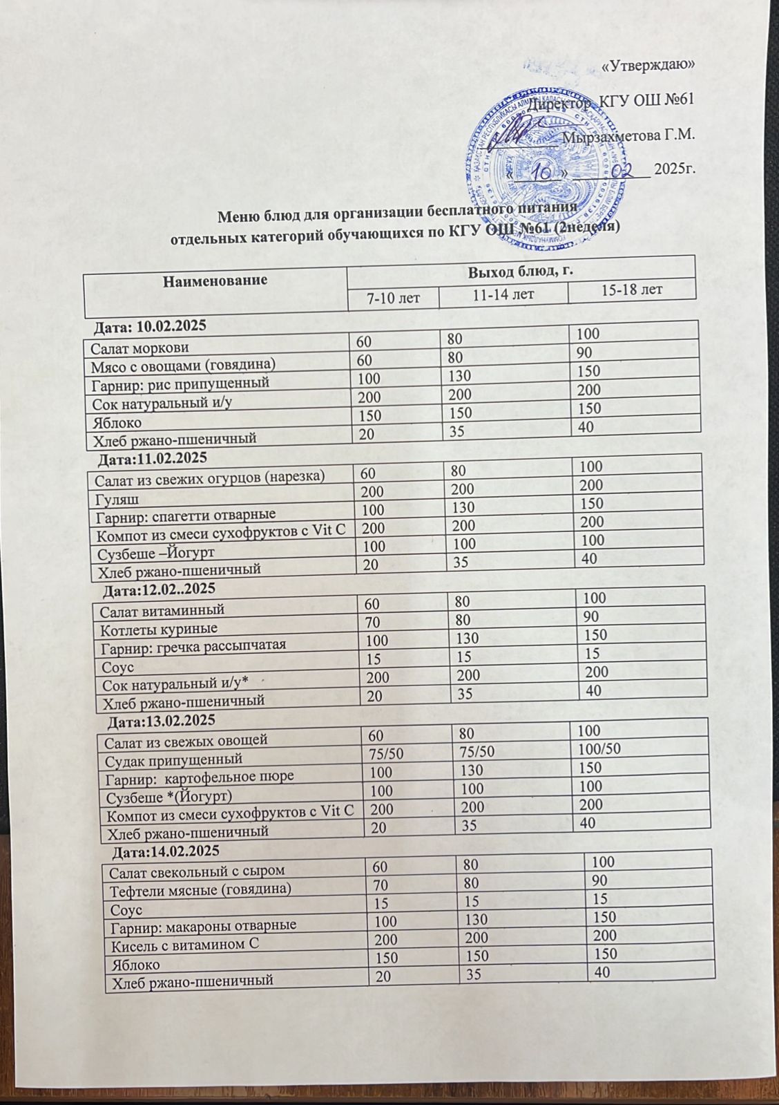 Меню: 2-ші апта