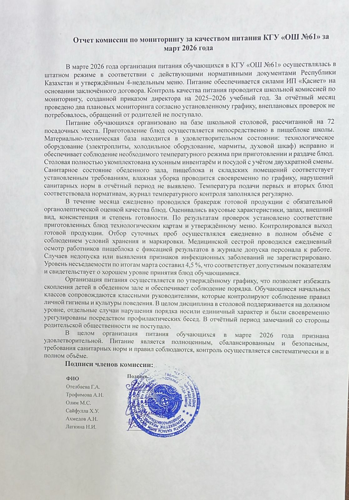 19 март 2026 0 1 2 3 4 5 Тамақтану сапасын бақылау жөніндегі комиссияның наурыз айына есебі.Отчет комиссии по мониторингу за качеством питания за март Осы беттің QR-коды:QR-код этой страницы: