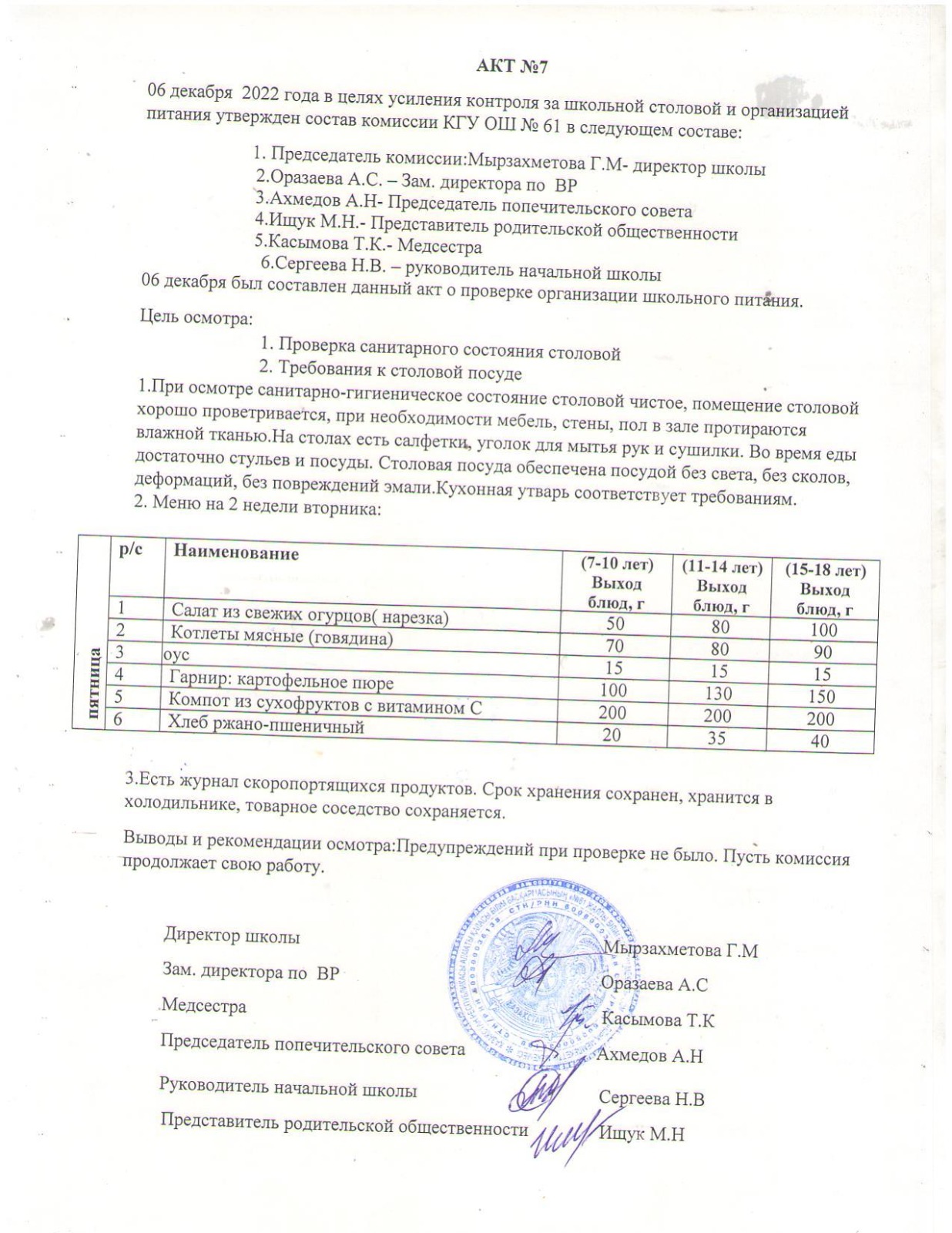 06 декабрь 2022 0 1 2 3 4 5 Тамақтану сапасын бақылау актісі(желтоқсан),Акт контроля качества питания (декабрь) Осы беттің QR-коды:QR-код этой страницы:
